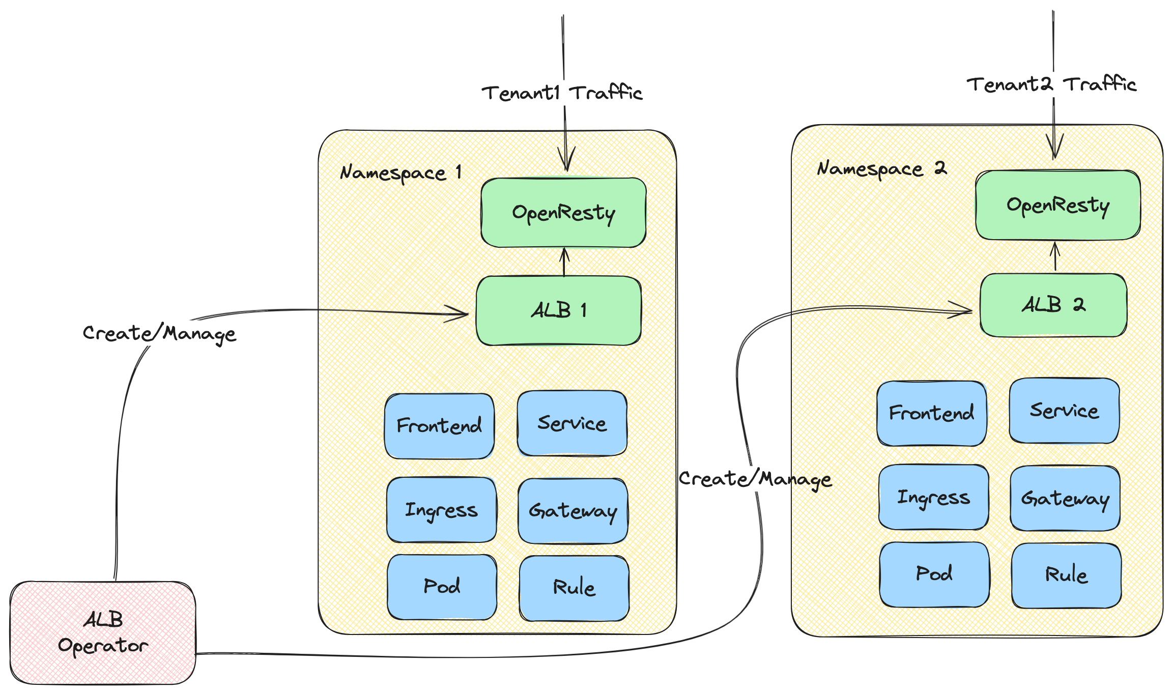 - ALB Operator: An operator that manages the lifecycle of ALB instances. It watches ALB CRs and creates/updates instances for different tenants.